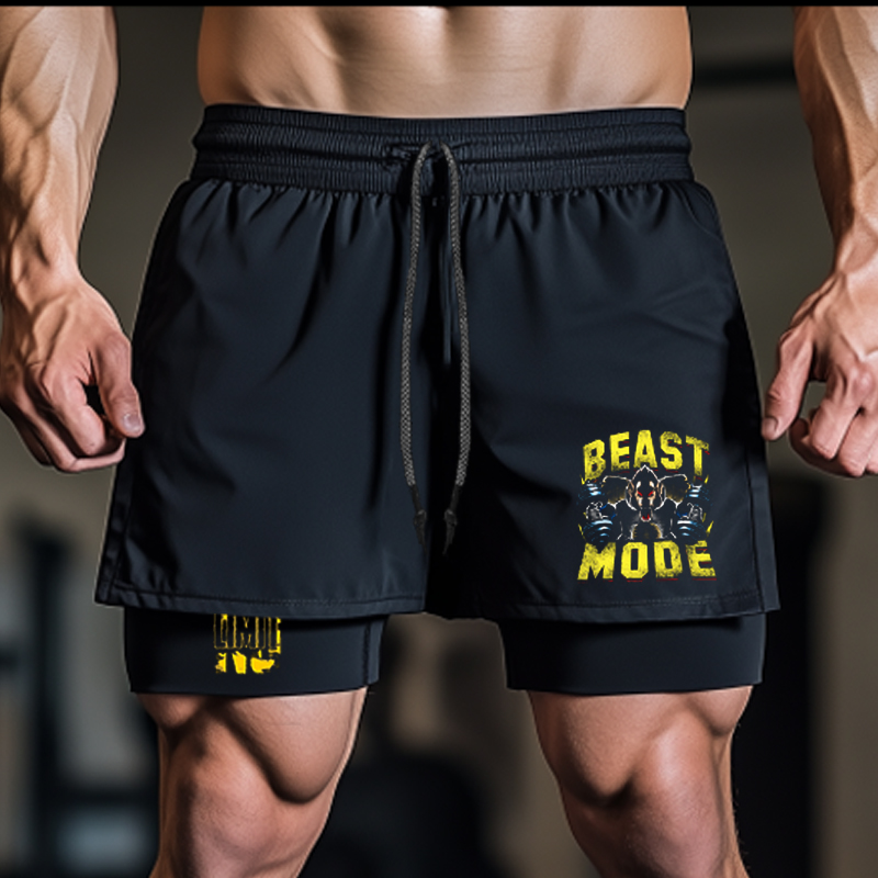 Beast Mooe Pattern Double-layer Fitness Shorts