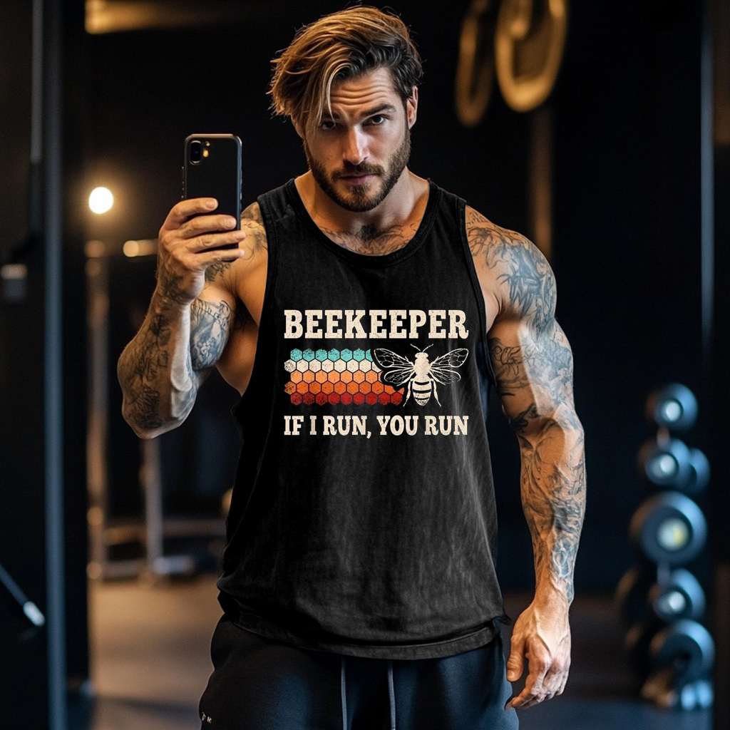 Beekeeper If I Run You Run Funny Gym Graphic Washed Tank Top