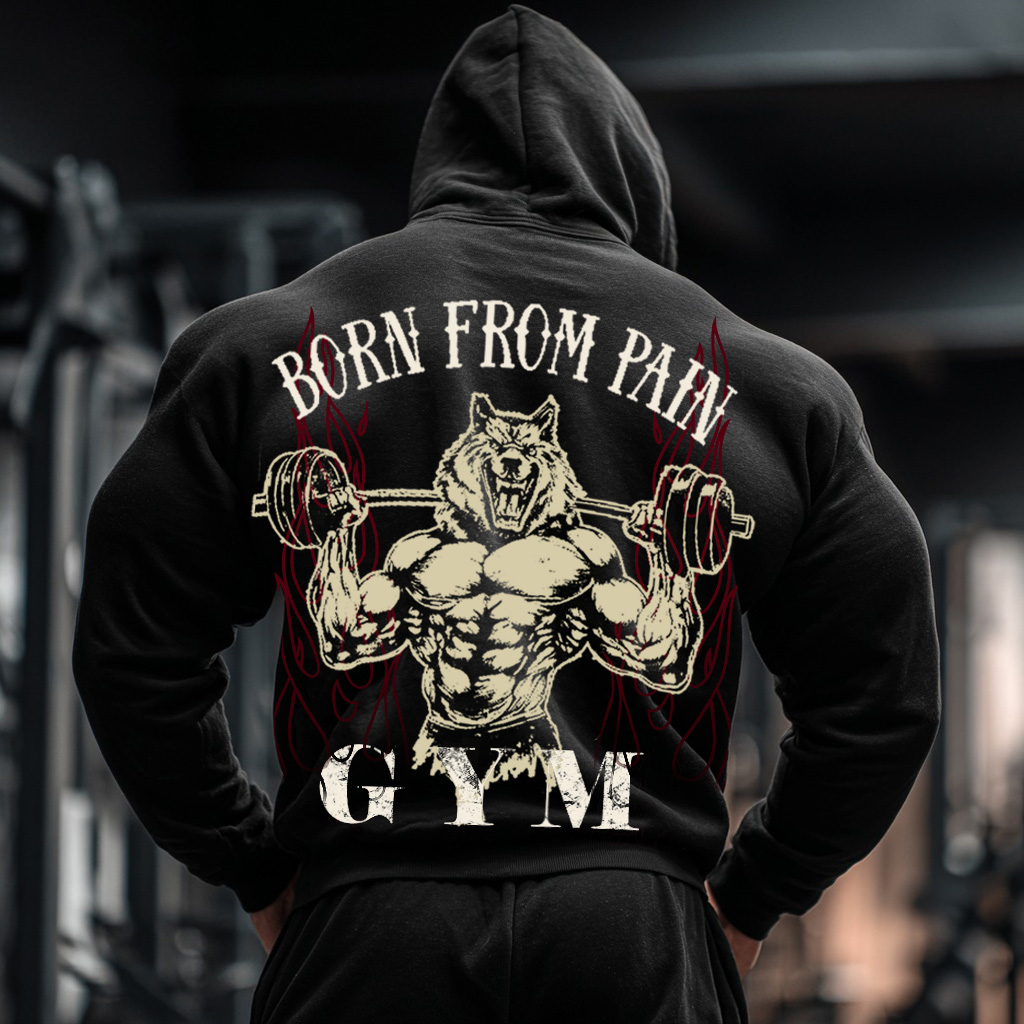 Born From Pain Wolf Graphic Pocket Gym Workout Hoodie