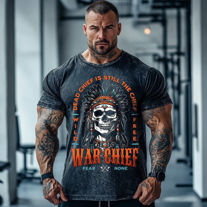 Chief Skull Washed Fitness Short Sleeve Shirt