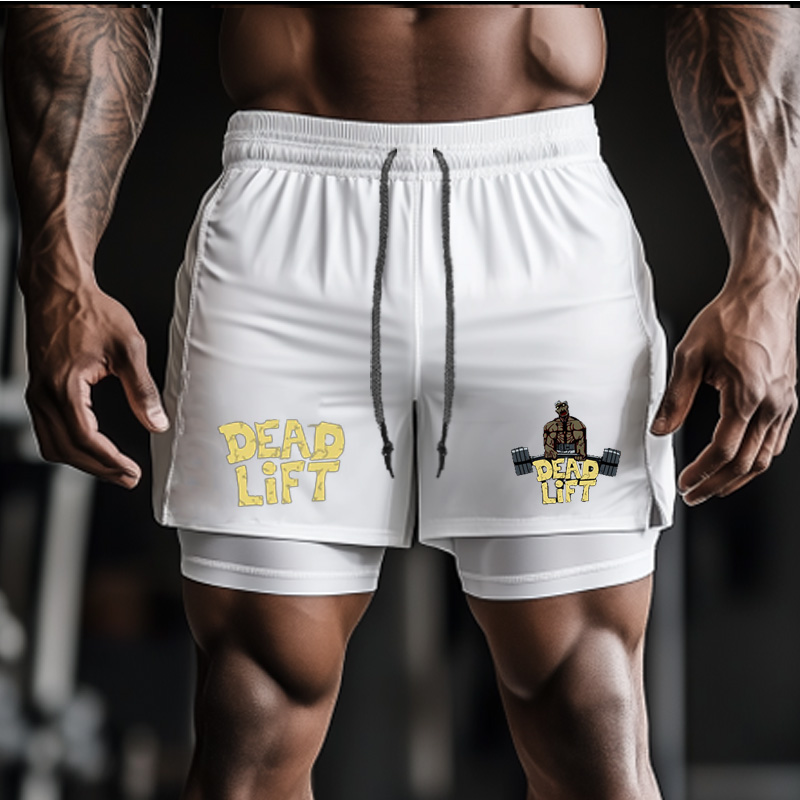 Dead Lift Pattern Fitness Double Layer Shorts