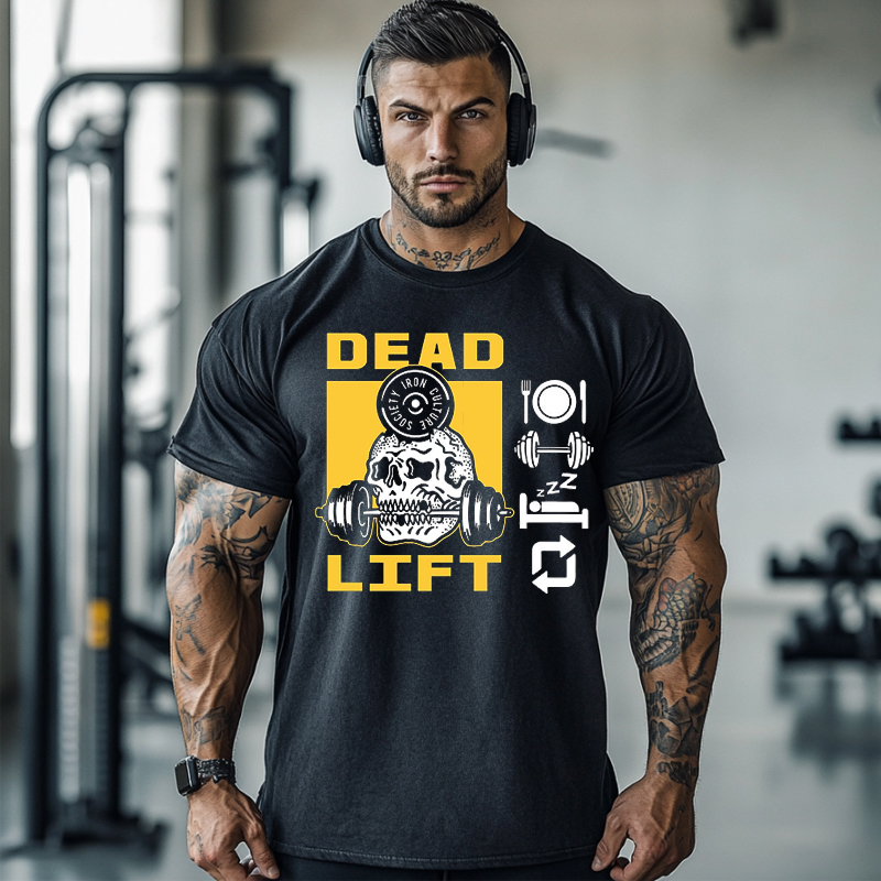 Dead Lift Pattern Washed Fitness Short Sleeved Shirt