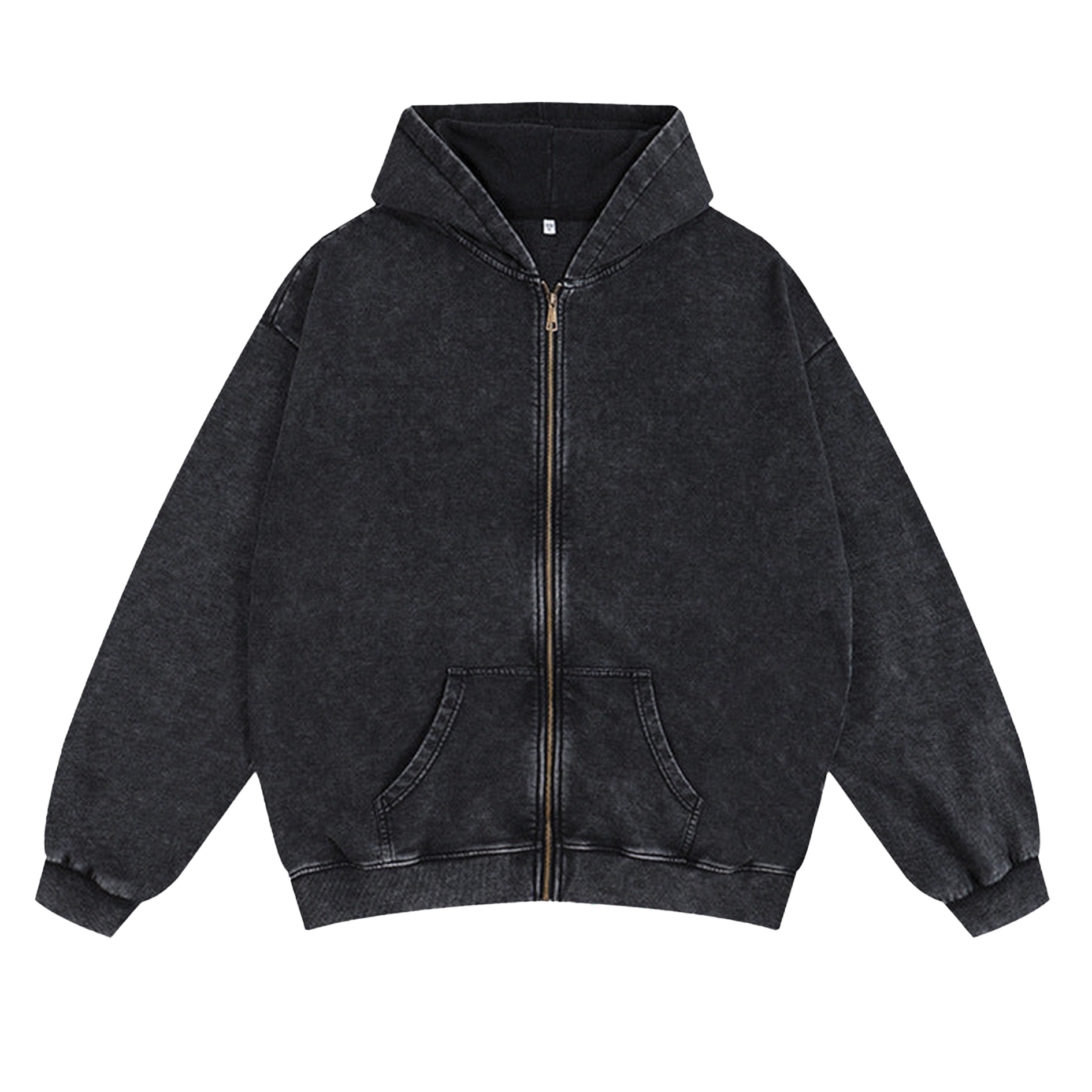 Distressed Washed Cotton Zip-up Hoodie