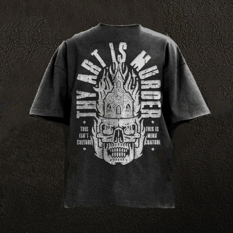 Flame Skull Fitness Water Washing Short Sleeve