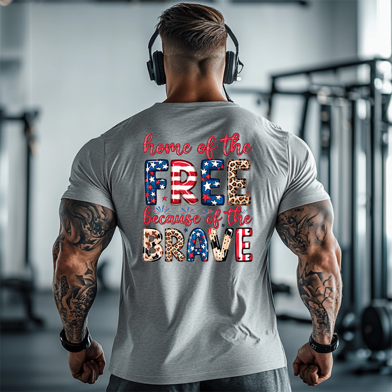 Free And Brave Slogan Fitness Short Sleeved Shirt