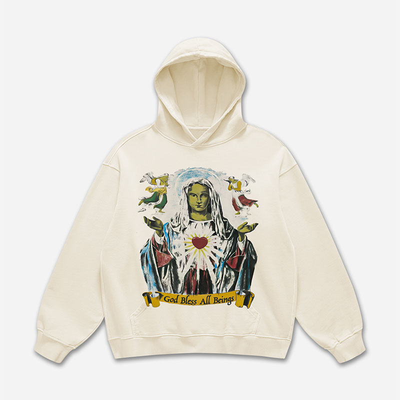 God Bless All Beings Retro Print Thick Fleece Hoodie