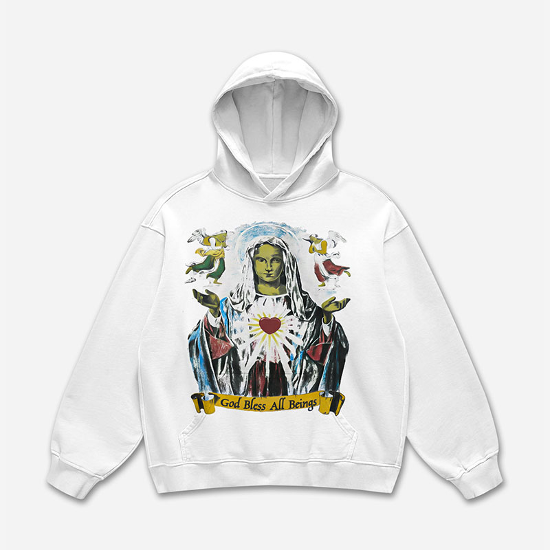 God Bless All Beings Retro Print Thick Fleece Hoodie