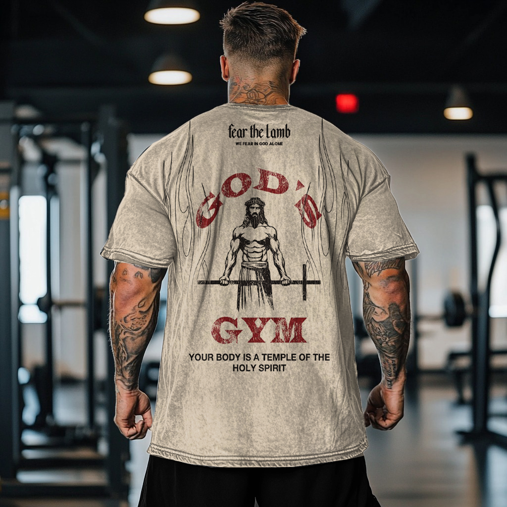 God's Gym Jesus Flame Graphics Washed Cotton T-shirt