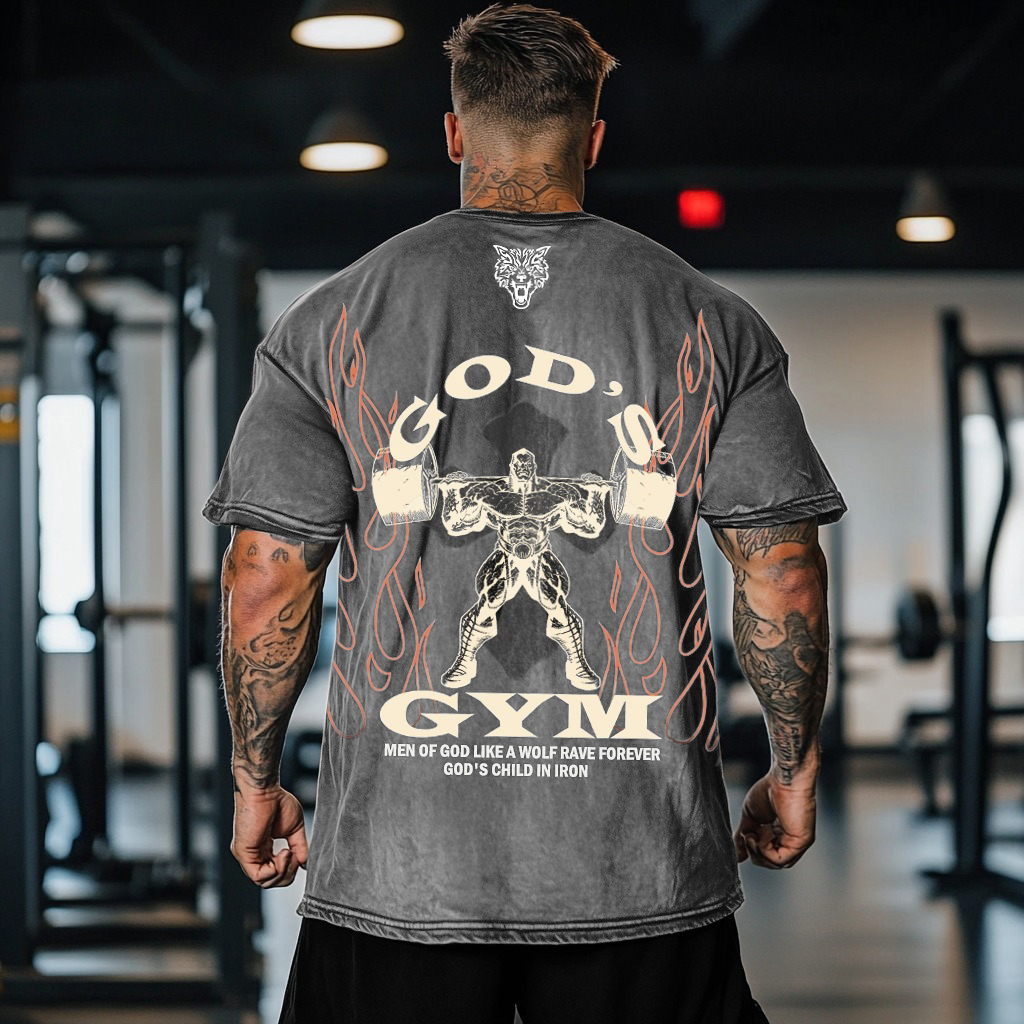 God's Gym Wolf Graphics Washed Cotton Gym T-shirt
