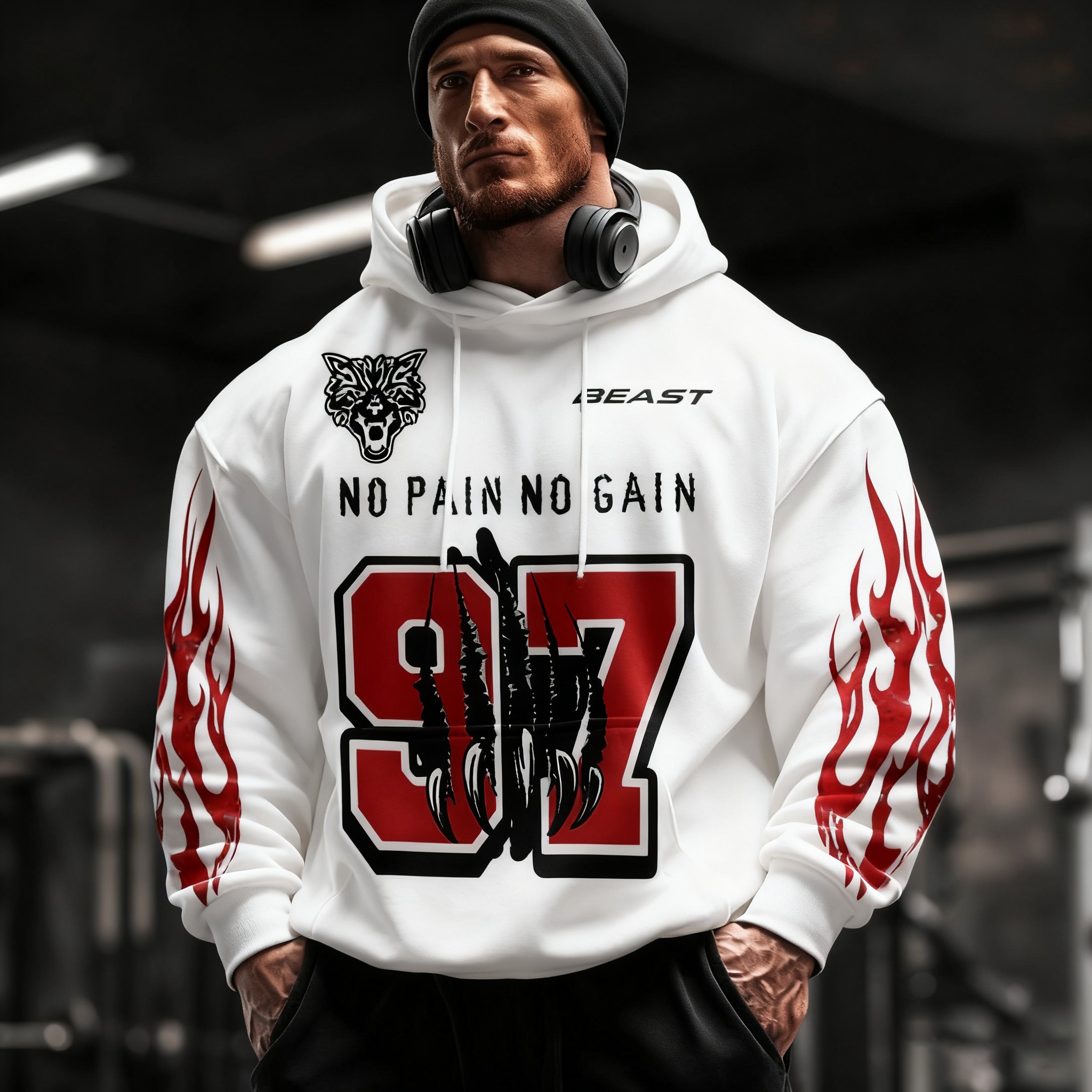 Gym No Pain No Gain Wolf Claw No.97 Graphic Cotton Solid Pocket Hoodie