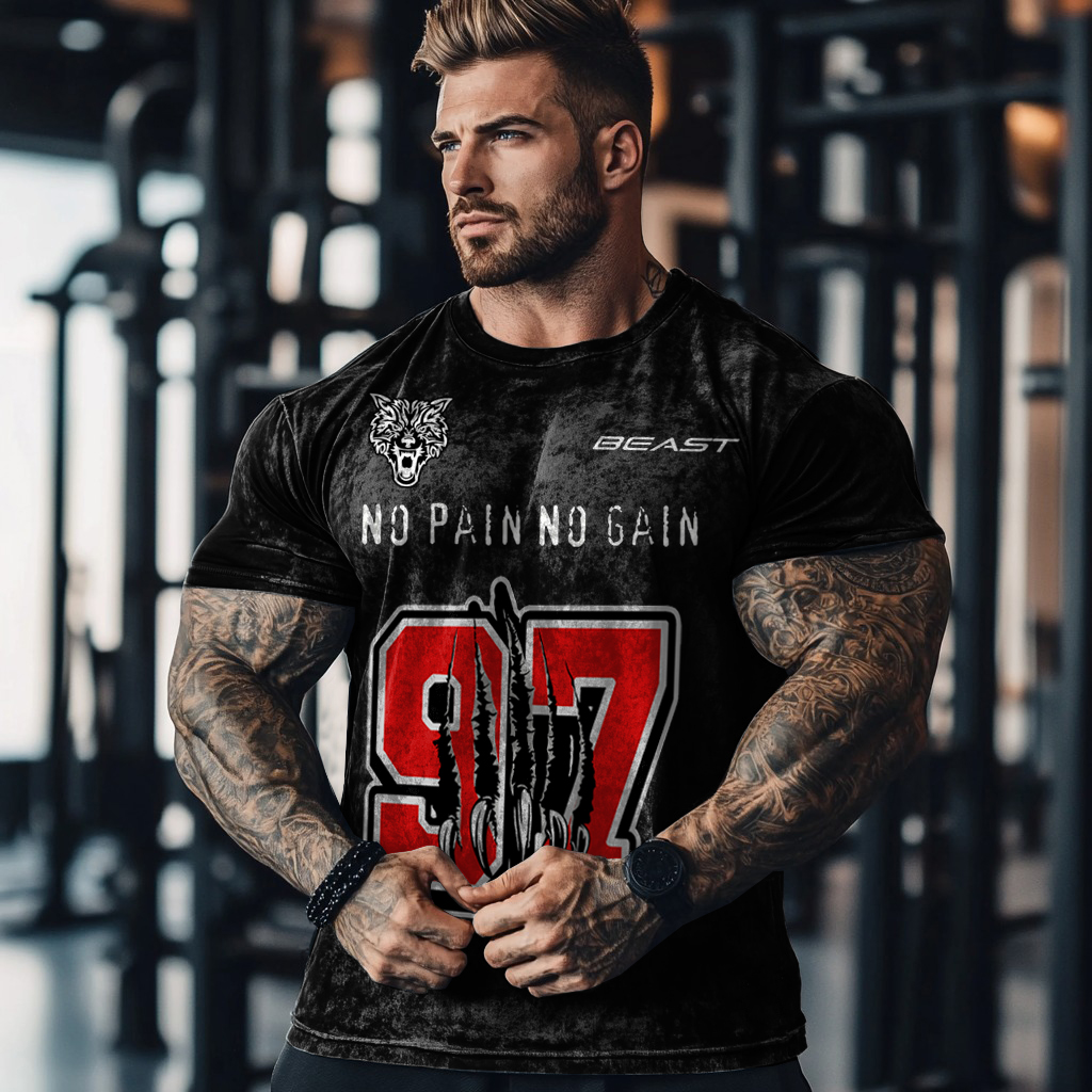 Gym No Pain No Gain Wolf Claw No.97 Graphic Washed Cotton T-shirt