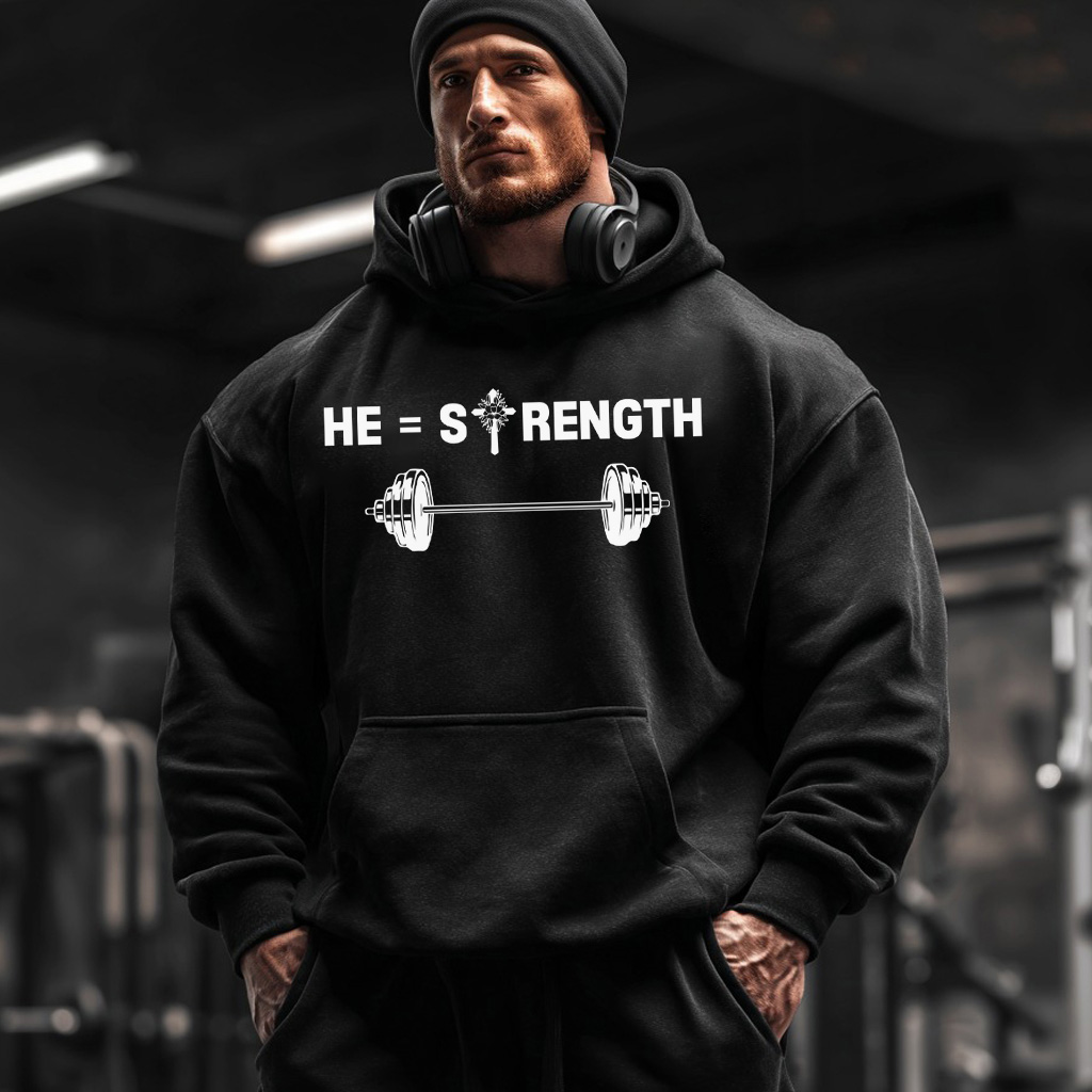 He Is Strength Christian Pocket Gym Workout Hoodie