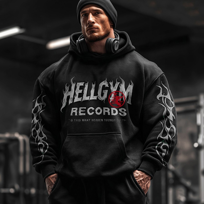 Hell Gym Flame Wolf Graphics Pocket Workout Hoodie