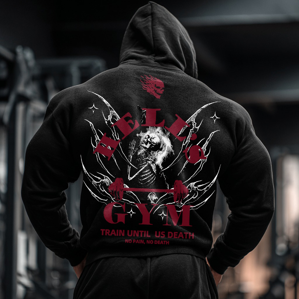 Hell Gym Skull Winged Graphics Pocket Workout Hoodie