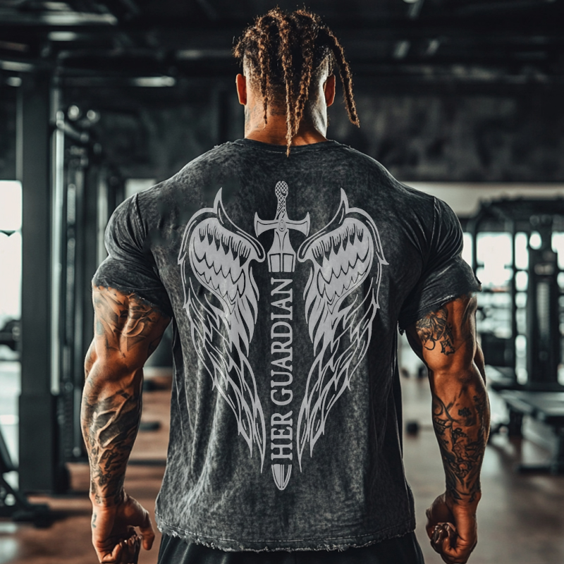 Her Guardian Angel Sword Washed T-shirt