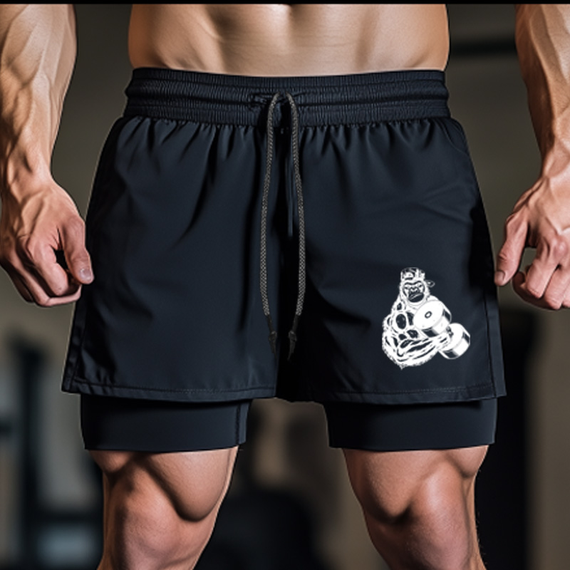 Hercules Gorilla Pattern Fitness Double-layer Shorts