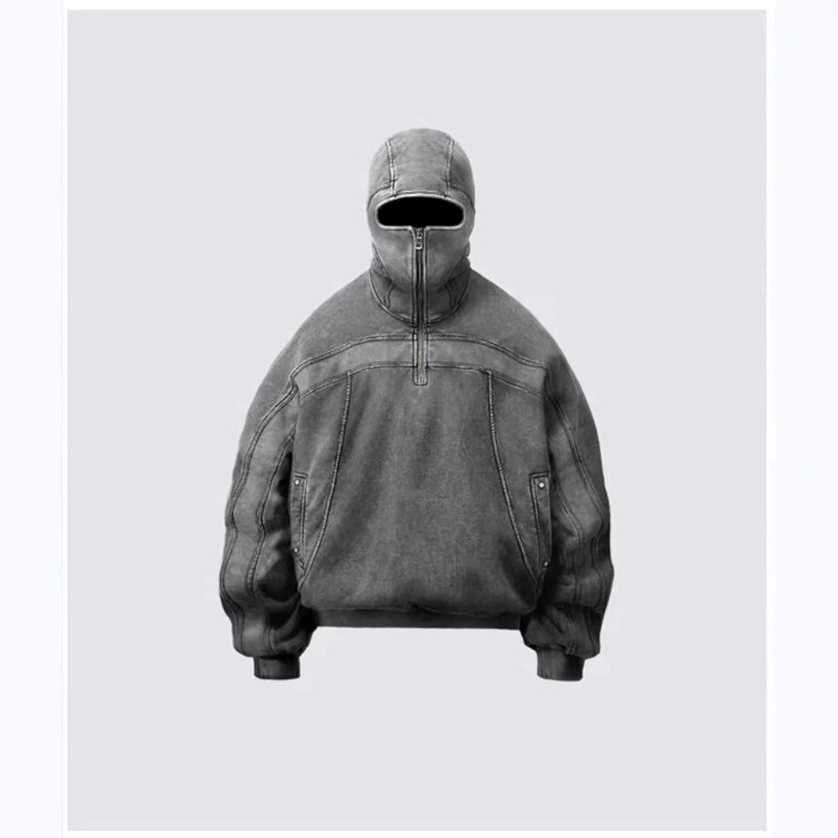 Hip-hop Masked Half-zip Washed Hoodie