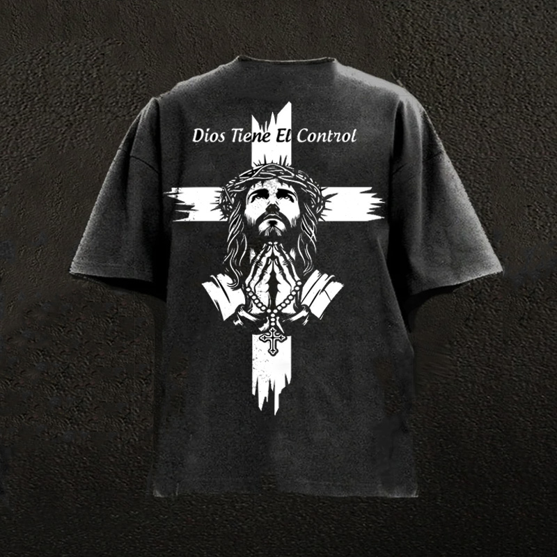 Jesus And The Cross Water Wash Crew Neck T-shirt