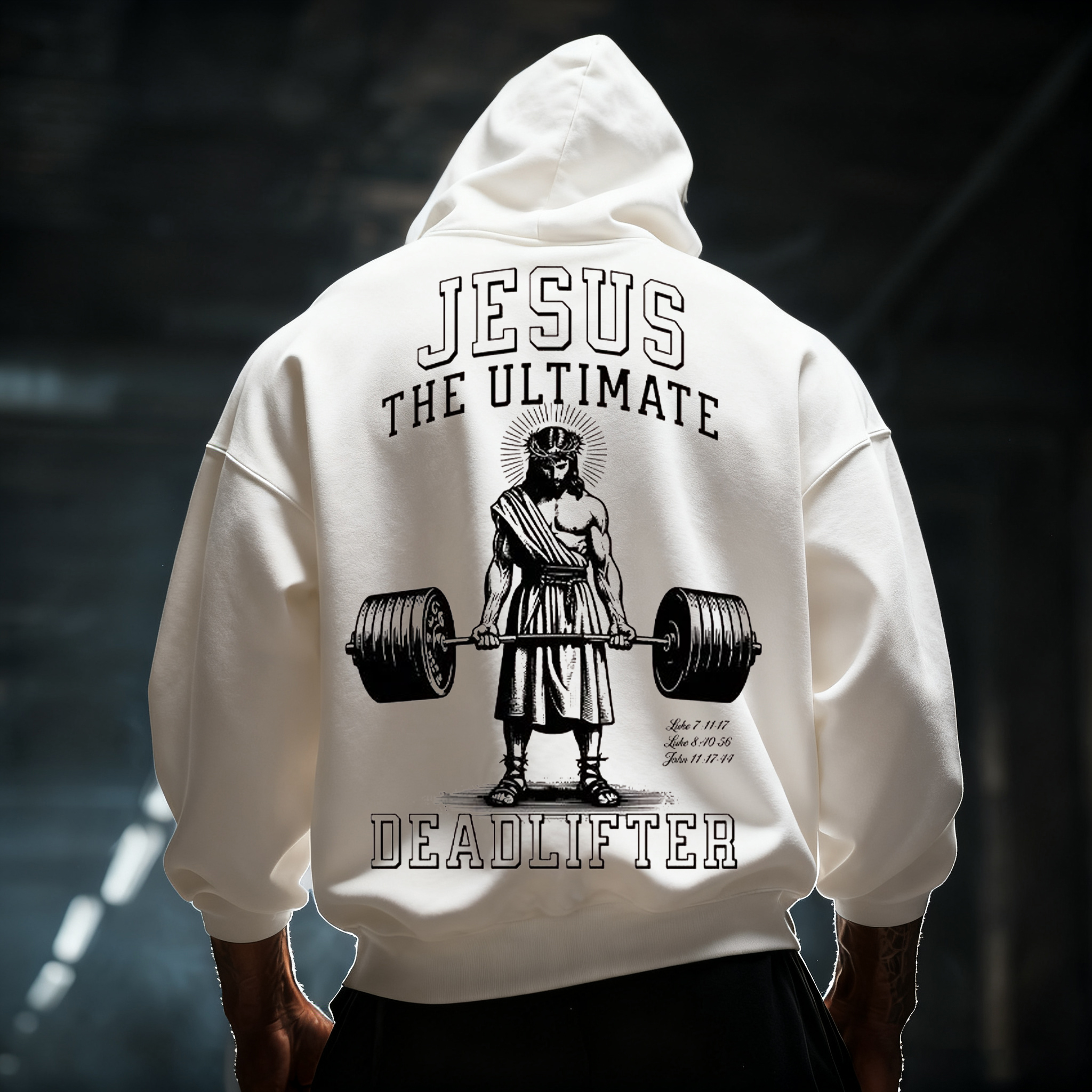Jesus The Ultimate Deadlifter Christian Pocket Gym Workout Hoodie