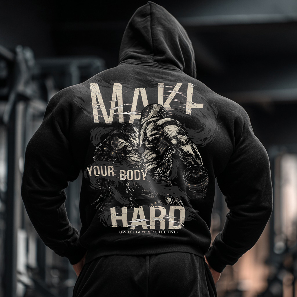 Make Your Body Hard Gym Graphics Pocket Workout Hoodie