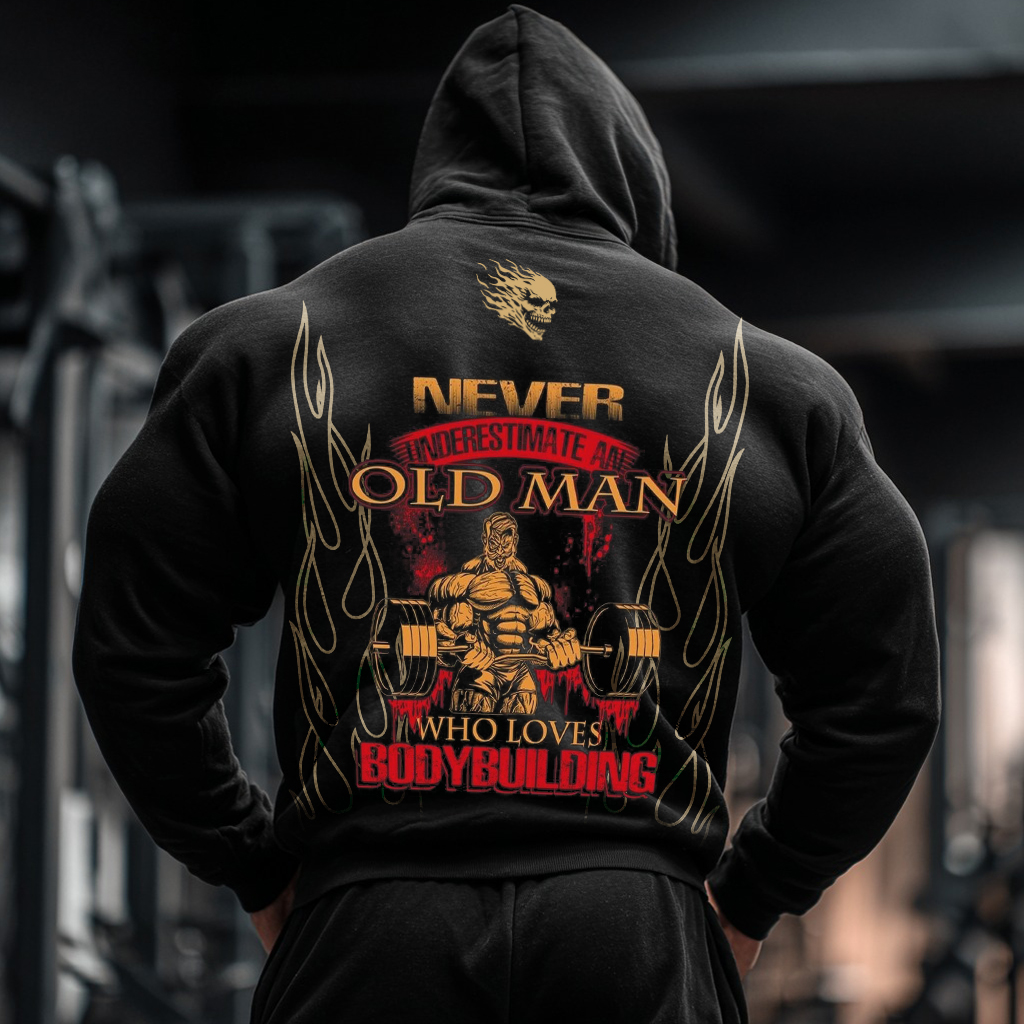 Never Underestimate An Old Man Who Loves Bodybuilding Solid Pocket Hoodie