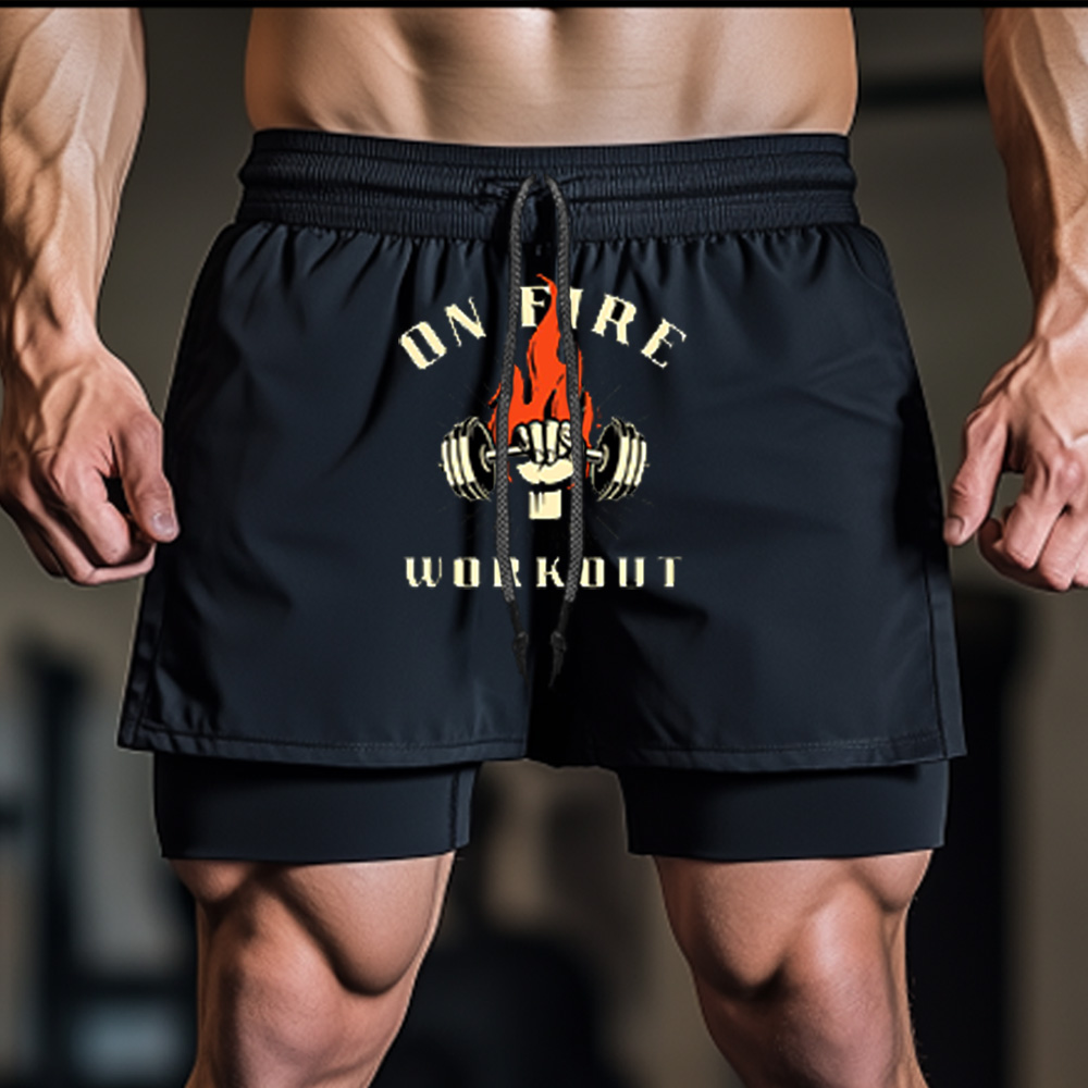 Power Flame Pattern Washed Fitness Shorts
