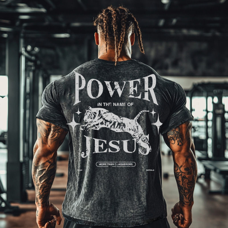 Power Jesus Fitness Water-wash Short-sleeved Shirt