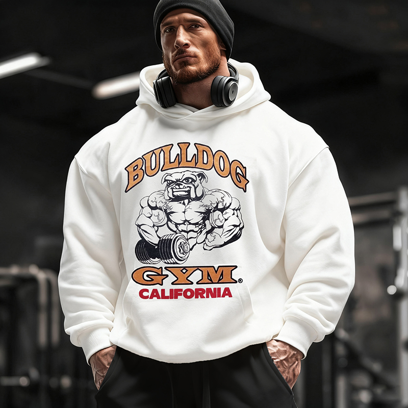 Retro Bulldog Gym Graphics Pocket Workout Hoodie