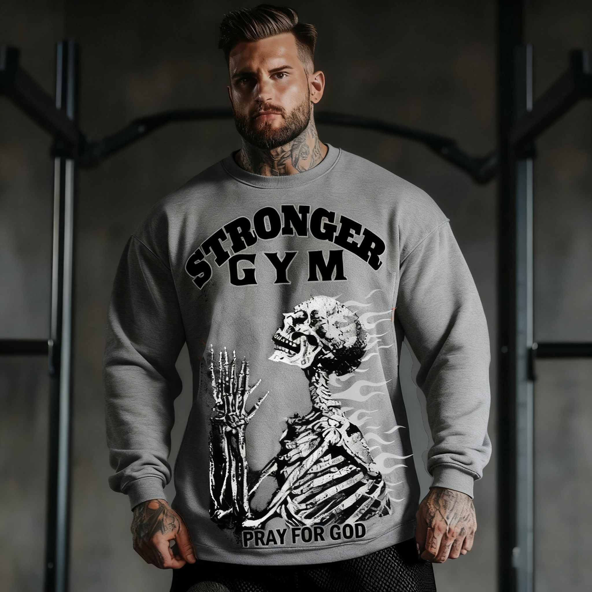 Retro Flame Skull Stronger Gym Cotton Crew Neck Sweatshirt
