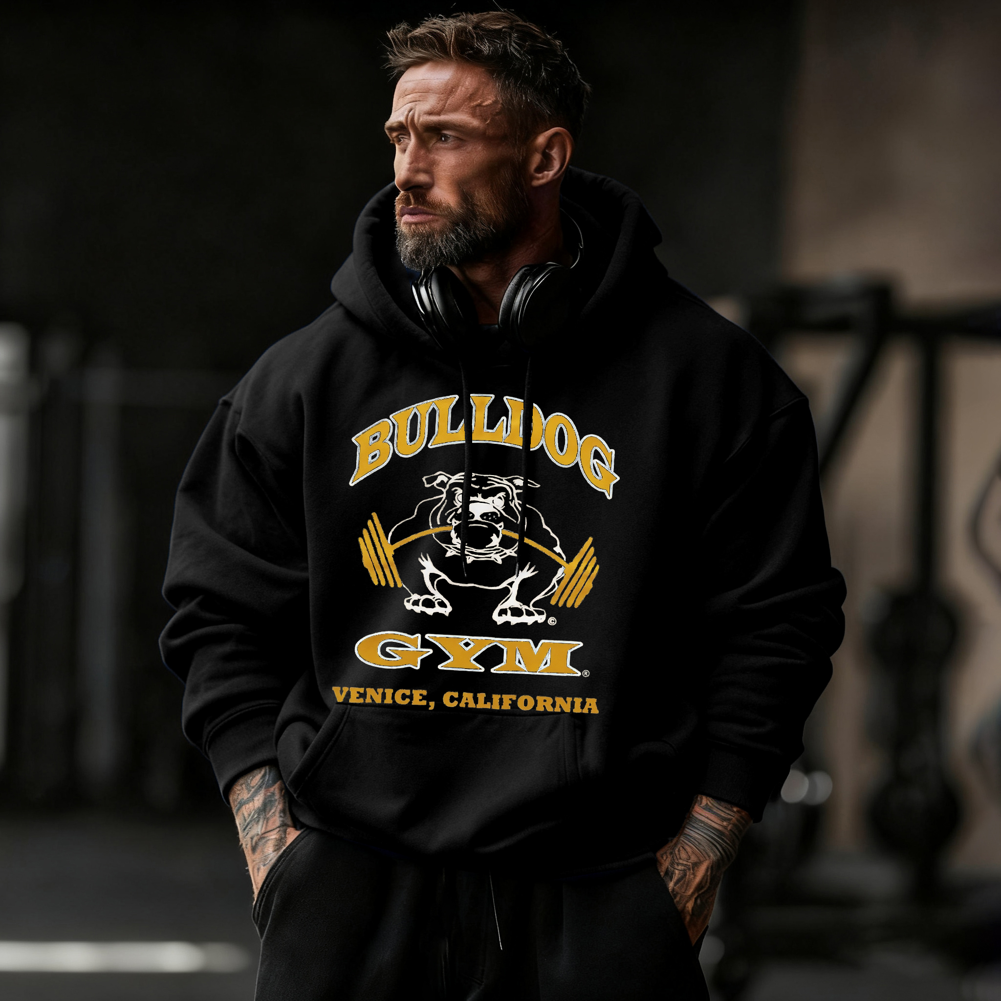 Retro Gym Bulldog Graphics Cotton Solid Pocket Hoodie
