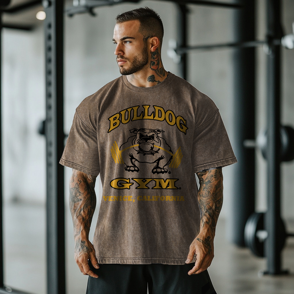 Retro Gym Bulldog Graphics Washed T-shirt