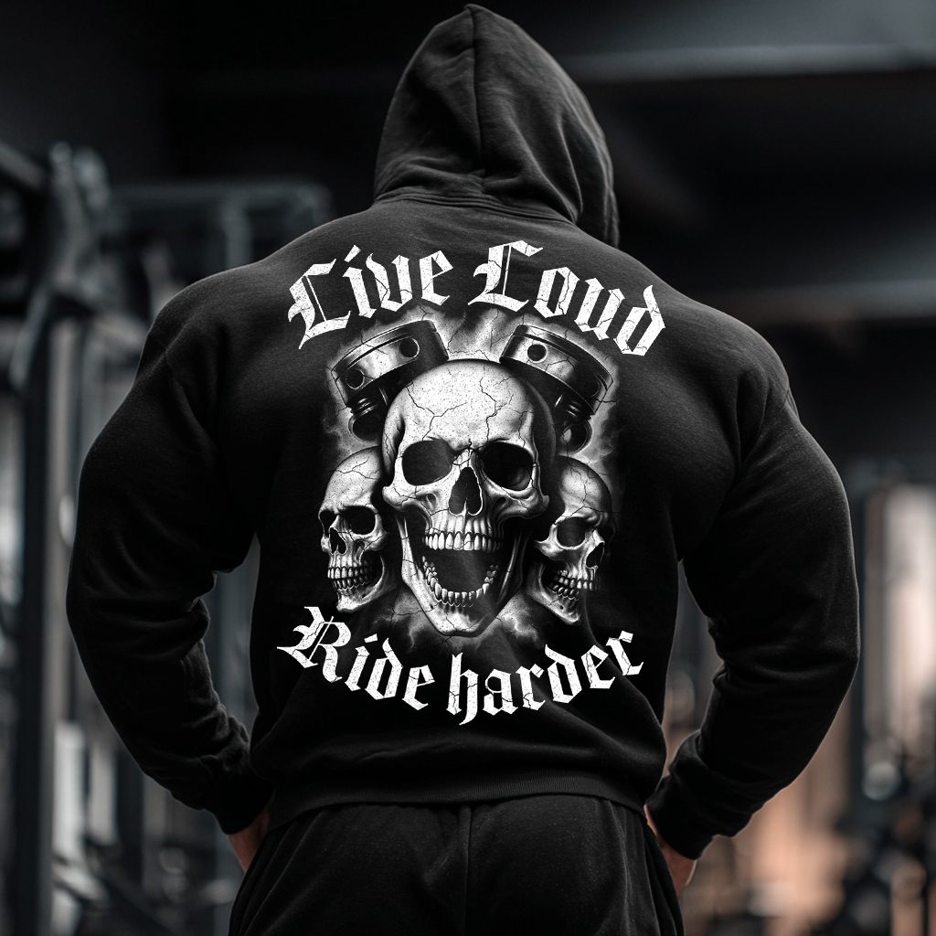Ride Harder Skull Graphics Cotton Solid Pocket Hoodie