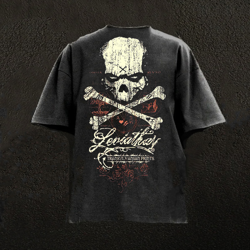Skull-patterned Water-wash Fitness Short-sleeved Shirt