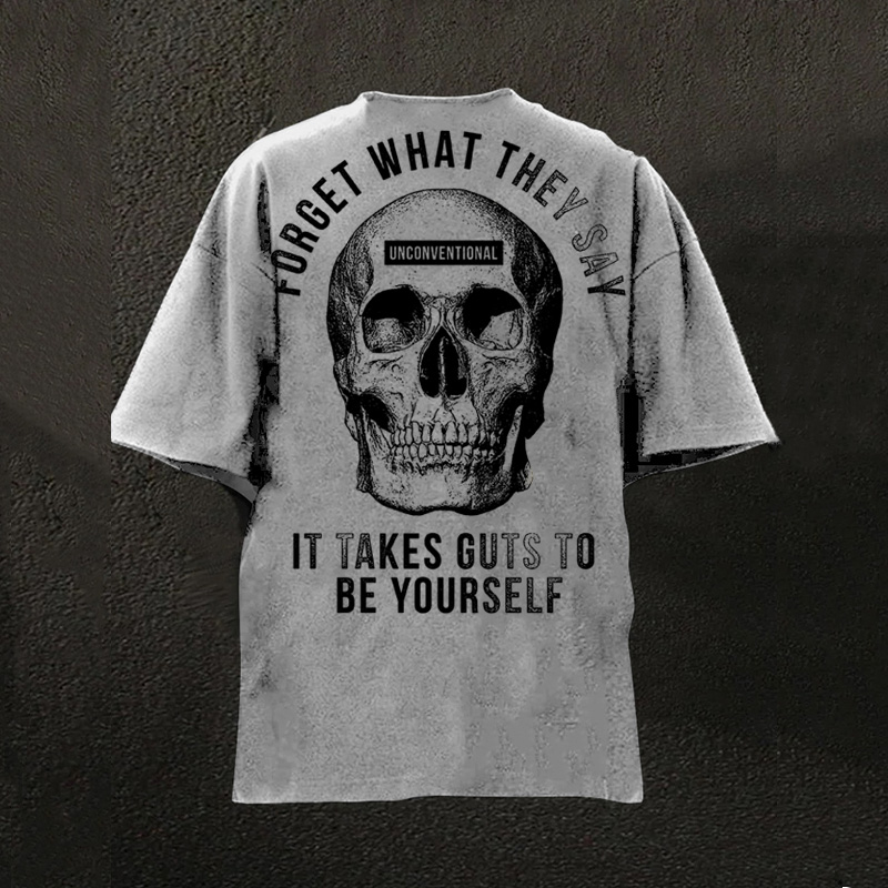 Smiling Skull Fitness Water-washed Short-sleeved Shirt