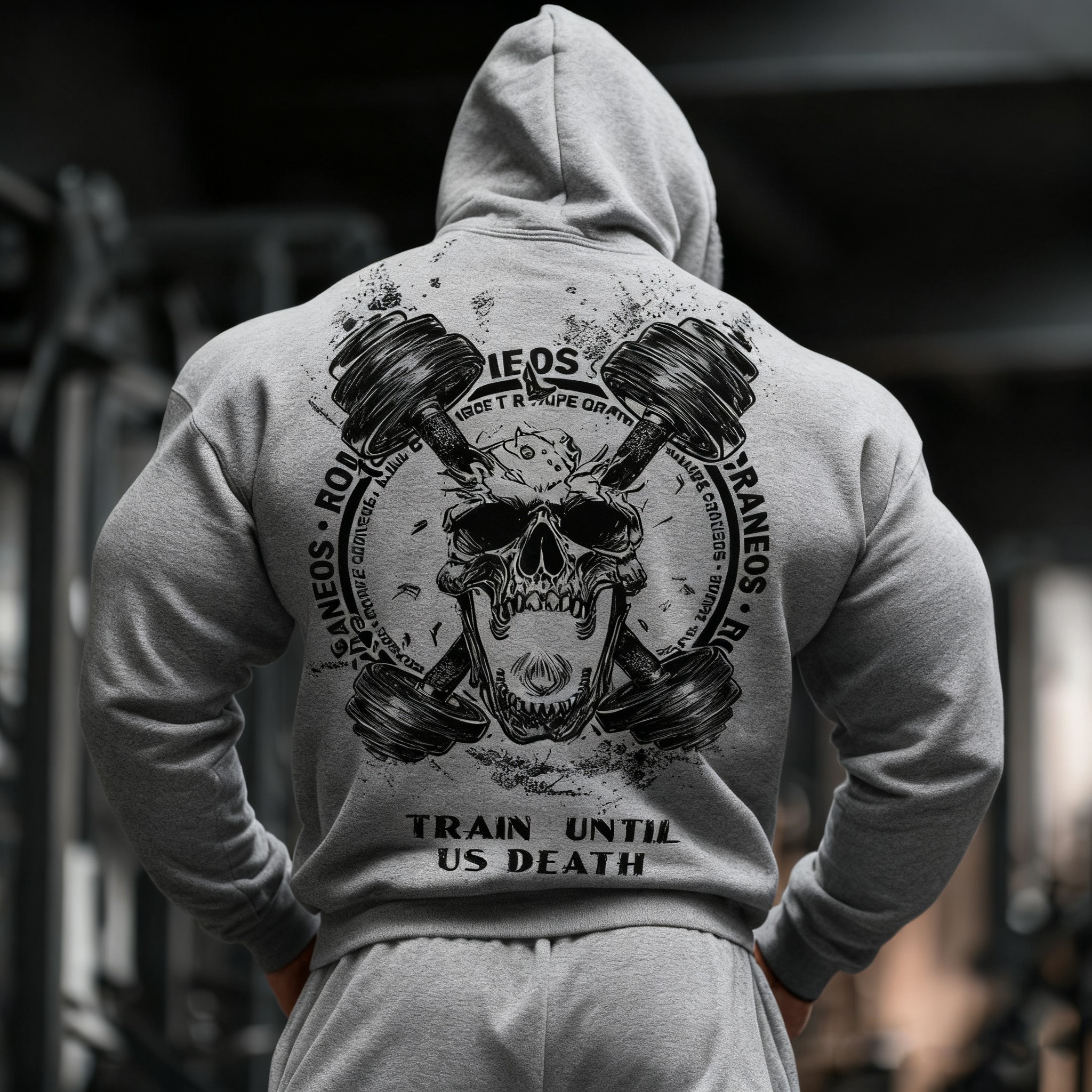 Train Until Us Death Skull Graphics Cotton Solid Pocket Hoodie