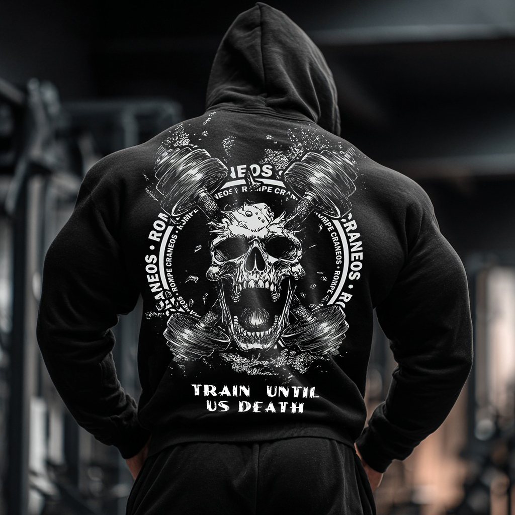 Train Until Us Death Skull Graphics Cotton Solid Pocket Hoodie