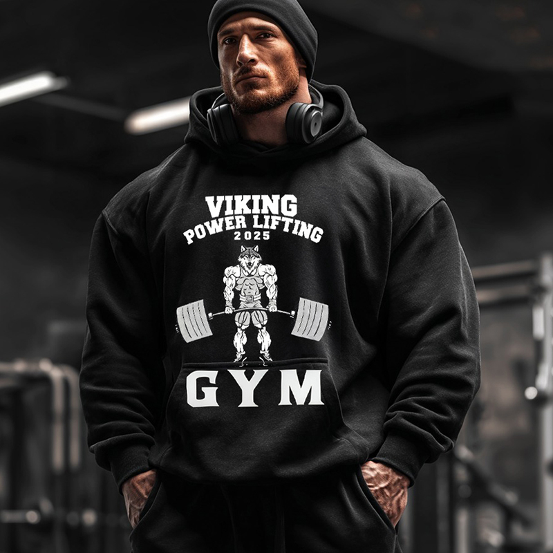 Viking Gym Power Lifting Wolf Graphic Solid Pocket Hoodie