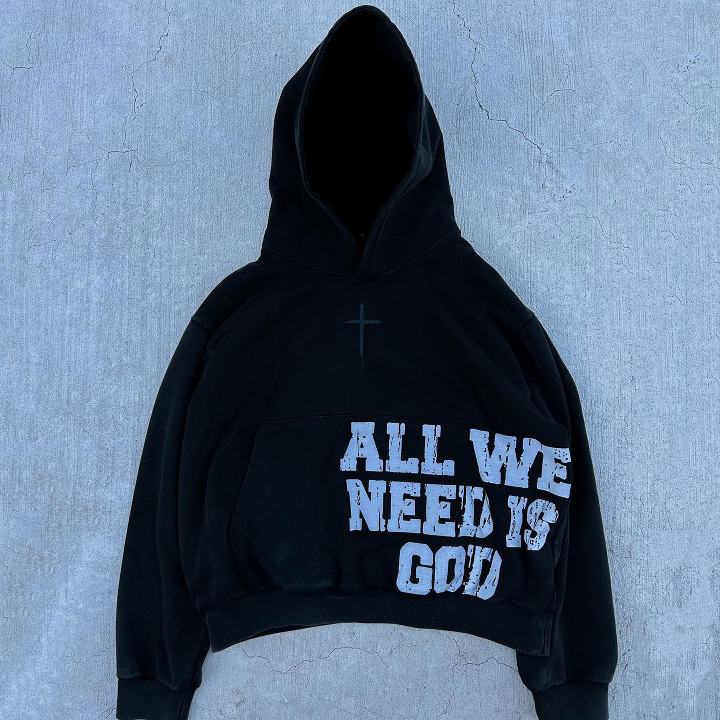 Vintage All We Need Is God Graphic Graphic Acid Wash Hoodie